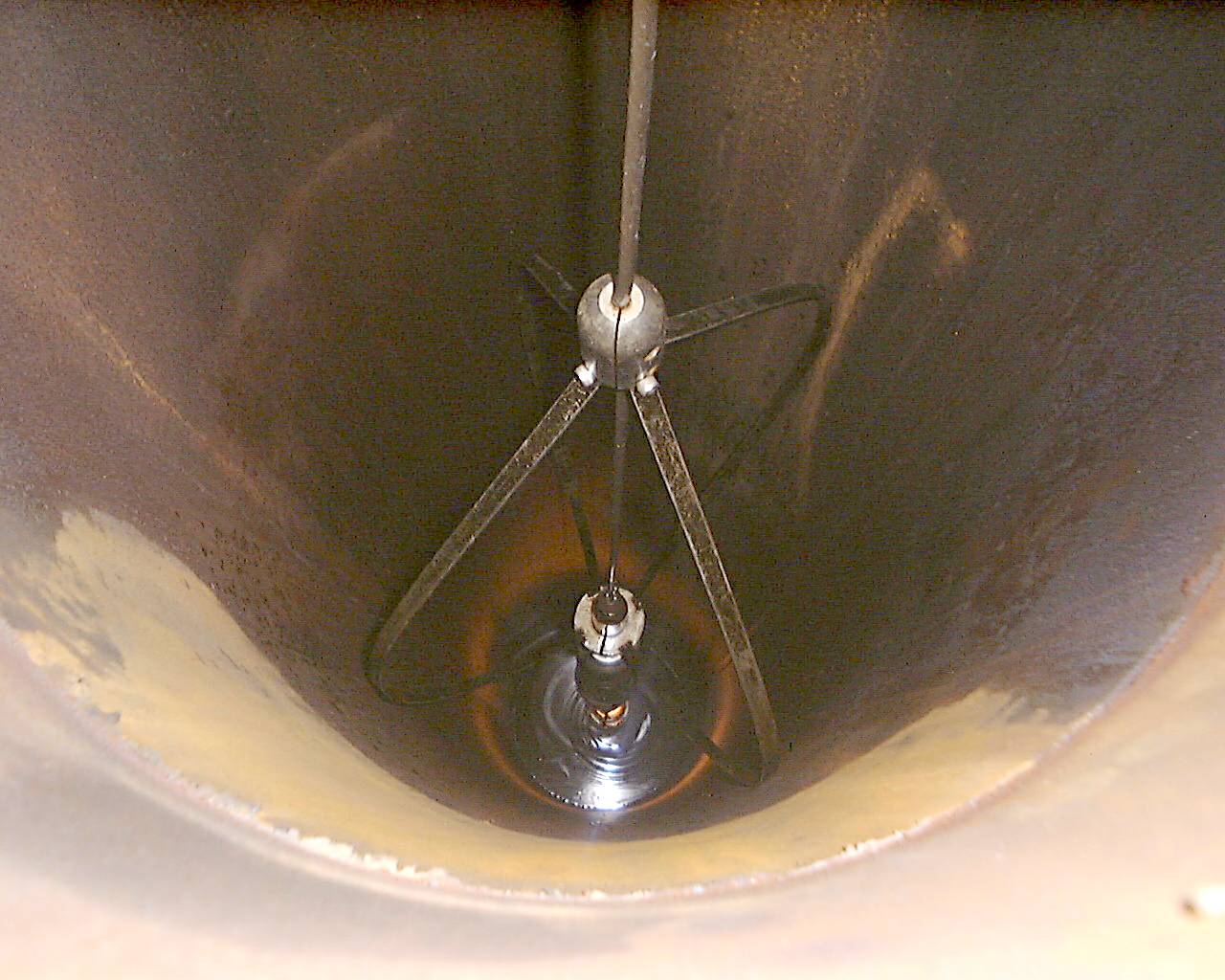 Top of 4" downhole radial view camera entering well displaying centering guides.