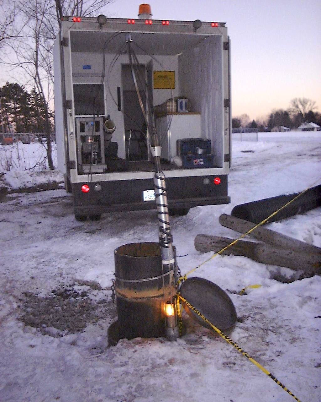 4" downhole radial view camera at wellhead. Rear of dogbox is in the background.